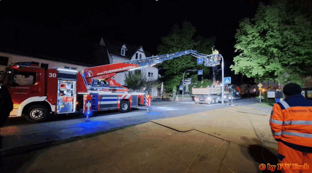 Die Unterstützung in der Nacht beschränkte sich auf die Bereitstellung von Strom und Werkzeug des HLF für die notwendige Beseitigung eines Hindernisses und konnte ohne Alarmierung geleistet werden. Im Laufe der Arbeiten wurde auch noch die Drehleiter aus Idstein hinzugezogen.