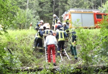 Auf der B 8 sind zwei Fahrzeuge zusammengestoßen und in den Wald geschleudert worden. Beim Eintreffen der Feuerwehr stellte sich herraus das keine Personen mehr eingeklemmt waren, es ging nur noch um die Bergung der PKW`s sowie einen Patienten den Hang hoch zutragen.